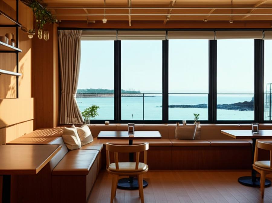 <이미지: 금능/협재 주변 예쁜 카페 인테리어 또는 제주 감성 소품 사진>