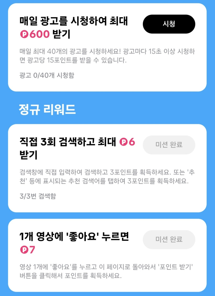 [기간 한정] 보는 재미로, 버는 재미로! 영상만 봐도, 좋아요만 눌러도, 검색만 해도, 포인트가 차