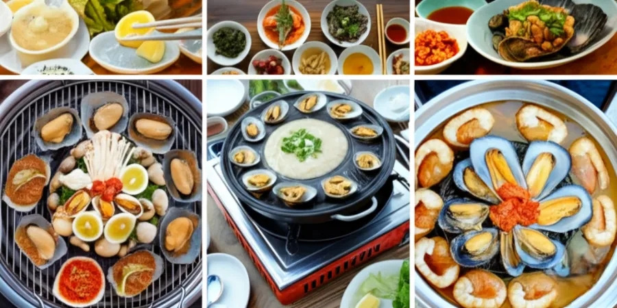 <이미지: 푸짐하고 맛있어 보이는 해산물 요리 (예: 조개구이, 회)>