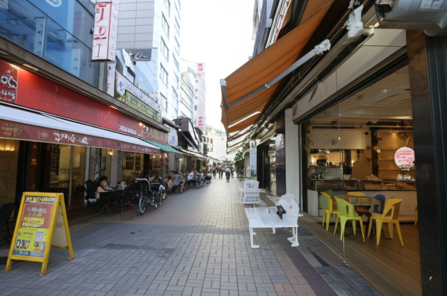 <이미지: 해운대 주변 상점가의 활기찬 모습 또는 바다가 보이는 카페의 여유로운 풍경>