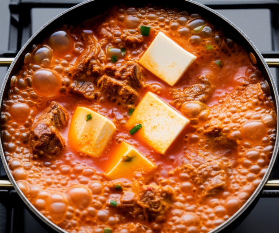 <끓고 있는 국에 국간장을 넣는 모습>