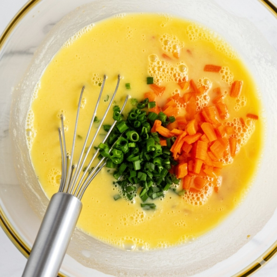 <이미지: 계란물에 다진 파와 고추 등을 넣고 섞는 모습>