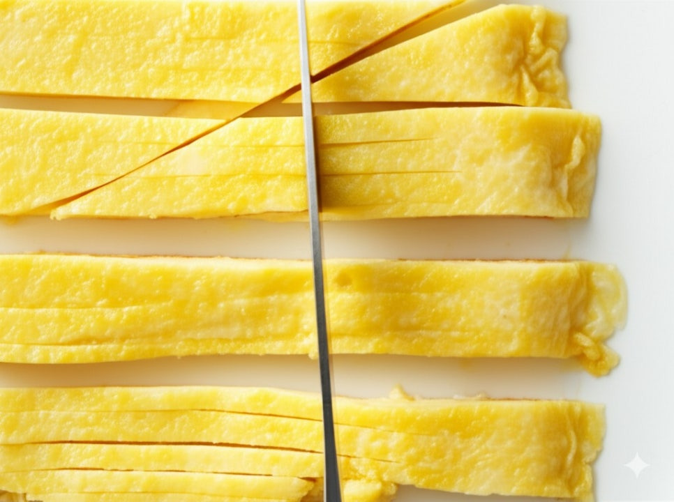 <이미지: 달걀 지단을 부쳐 채 썰어주는 모습>