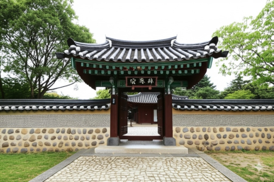 <이미지: 고풍스러운 창평고씨 고택의 모습과 정갈한 돌담길 풍경>