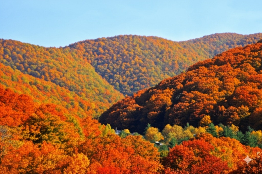 <이미지: 가을 단풍으로 물든 횡성의 아름다운 산과 들 풍경>