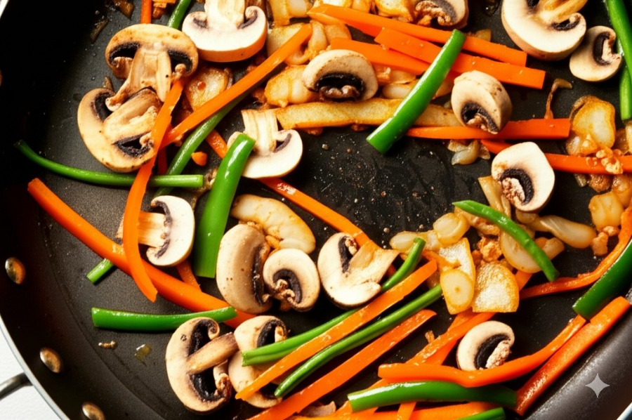 * 양파, 당근, 애호박, 양배추 순으로 넣고 함께 볶아줍니다.