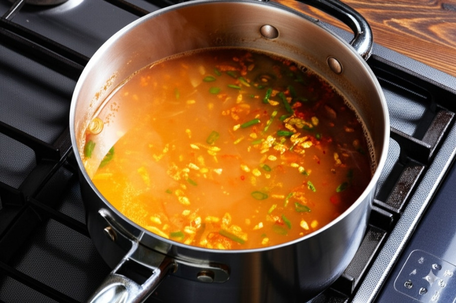 * 냄비에 물 또는 닭 육수를 붓고 멸치 다시마 팩을 넣어 끓여줍니다. 육수가 우러나면 다시마 팩은 건져냅니다. (닭 육수를 사용하면 더욱 깊은 맛을 낼 수 있습니다.)