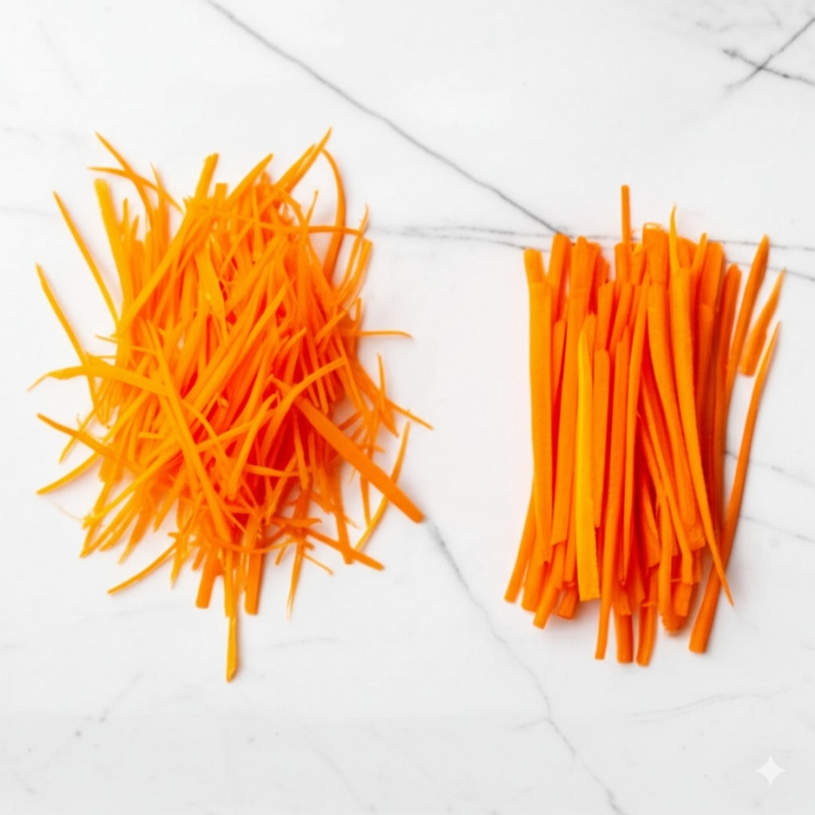 이미지: 채 썬 양파와 당근, 어슷하게 썬 대파의 모습