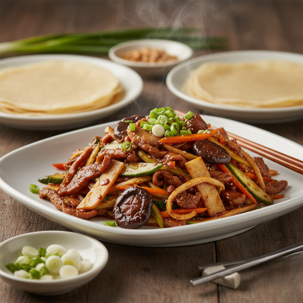 안녕하세요, 미식가 여러분! 오늘은 중국 북방 요리의 정수이자, 한국에서도 많은 사랑을 받는 경장유슬(京醬肉絲) 레시피를 소개합니다. '베이징식 소스에 버무린 채 썬 돼지고기'라는 뜻 그대로, 돼지고기를 가늘게 채 썰어 춘장(甜面酱, 티엔멘장) 베이스의 소스로 볶아내, 향긋한 파채와 함께 건두부 또는 전병에 싸 먹는 요리입니다. 전문 중식당의 깊은 맛을 집에서 완벽하게 재현하는 법을 알려드립니다!