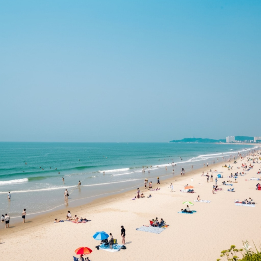 **<이미지: 넓은 백사장에서 사람들이 여유롭게 시간을 보내고 있는 제부도 해수욕장 풍경>**