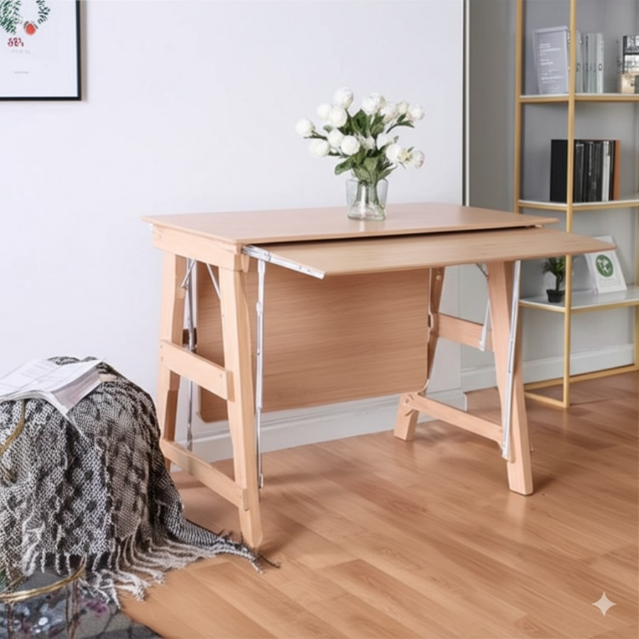 <이미지: 접이식 테이블이 펼쳐진 모습과 접힌 모습 비교>
