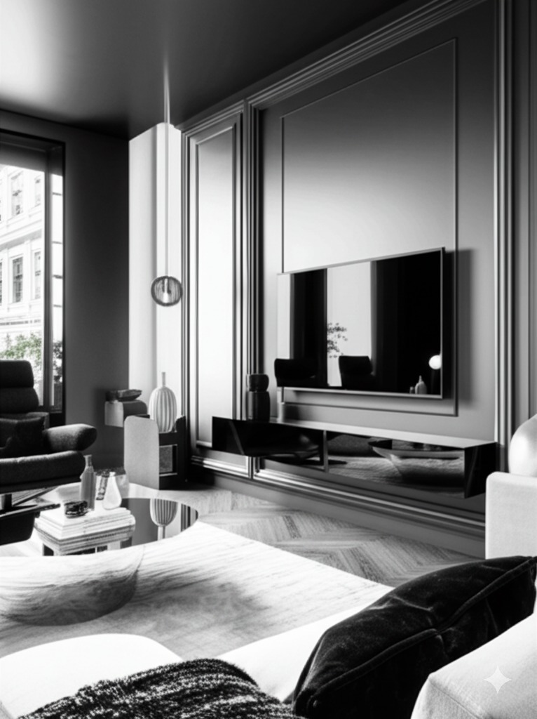 모던 & 시크 스타일: 블랙, 화이트, 그레이 등의 무채색을 사용하여 세련되고 도시적인 분위기를 연출합니다. 메탈, 유리 소재의 가구나 조명을 활용하면 더욱 스타일리시한 느낌을 줄 수 있습니다.